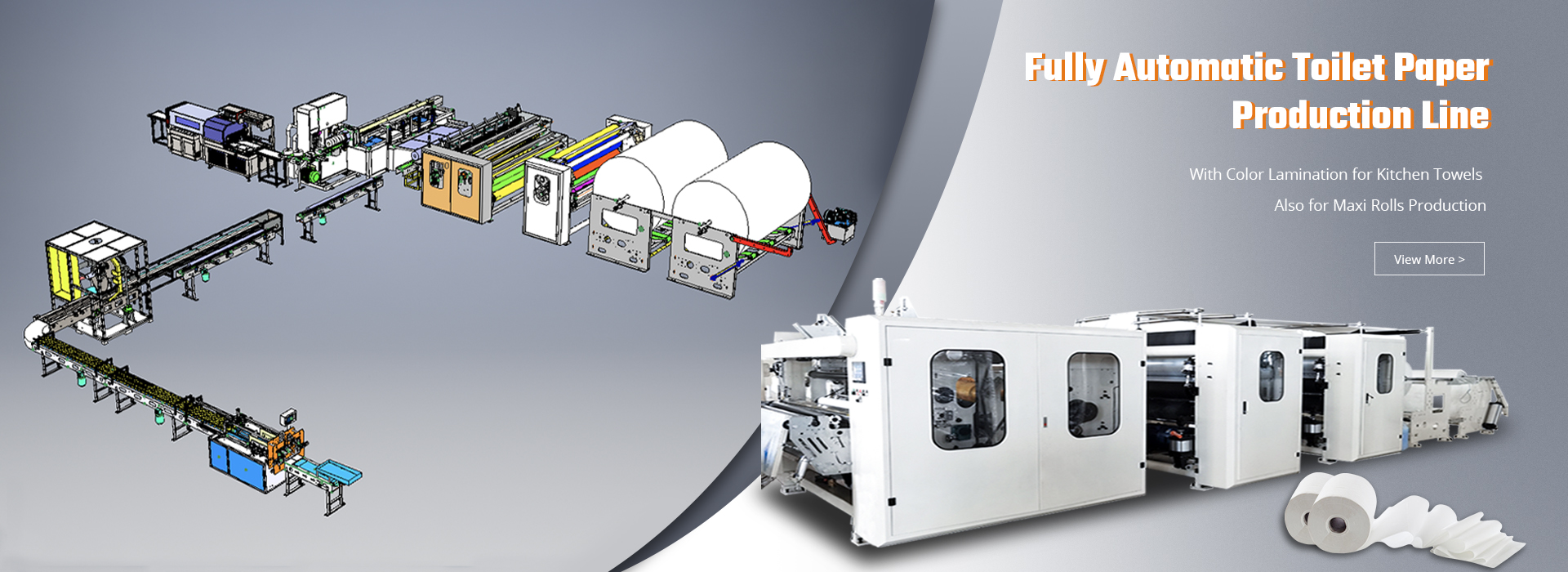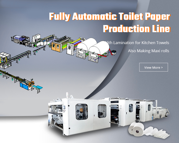 Fully Automatic Kitchen Towel And Toilet Paper Rolls Production Line can produce high quality toilet paper rolls to your specifications. This production line includes toilet paper & kitchen towel rewinding machine, accumulator, log saw cutting machine and packing machines.